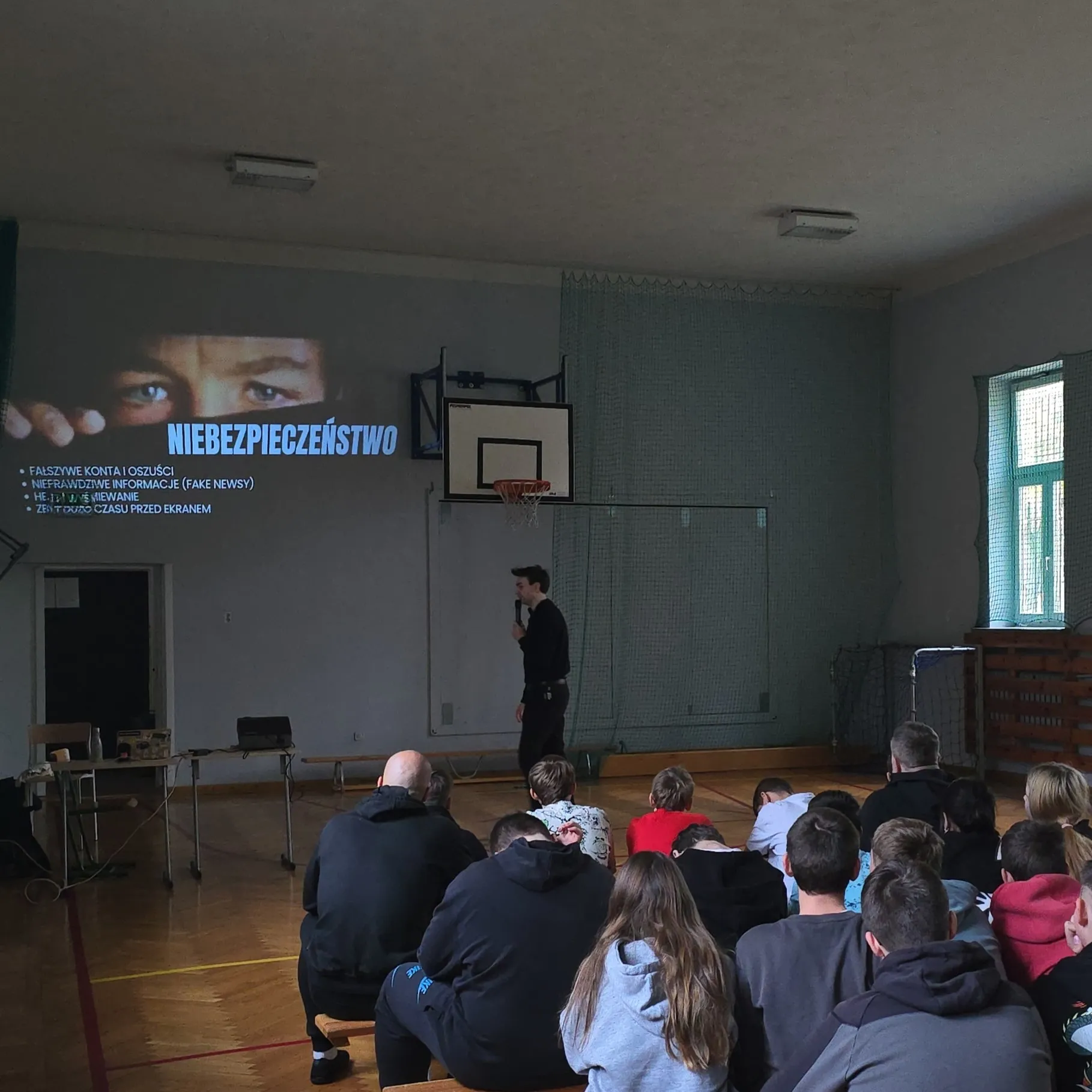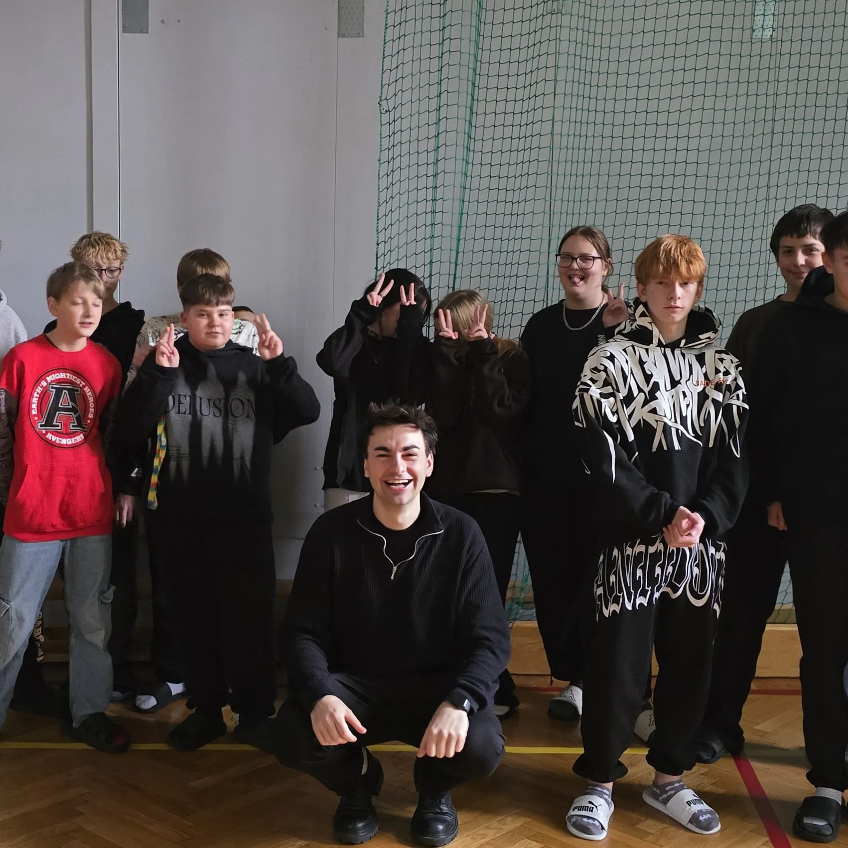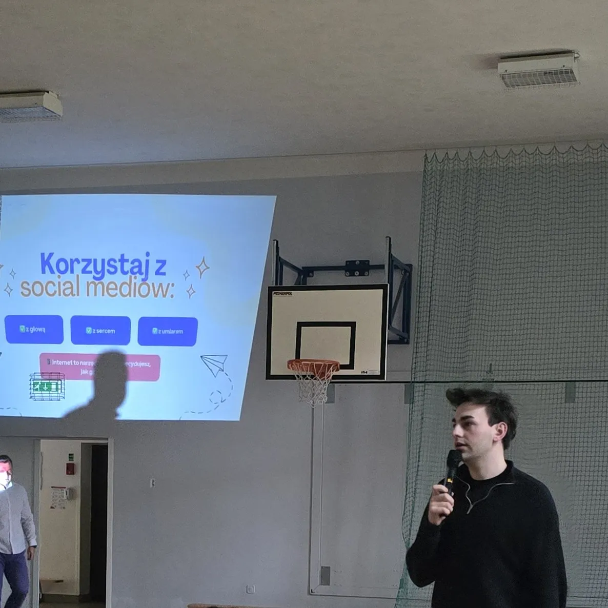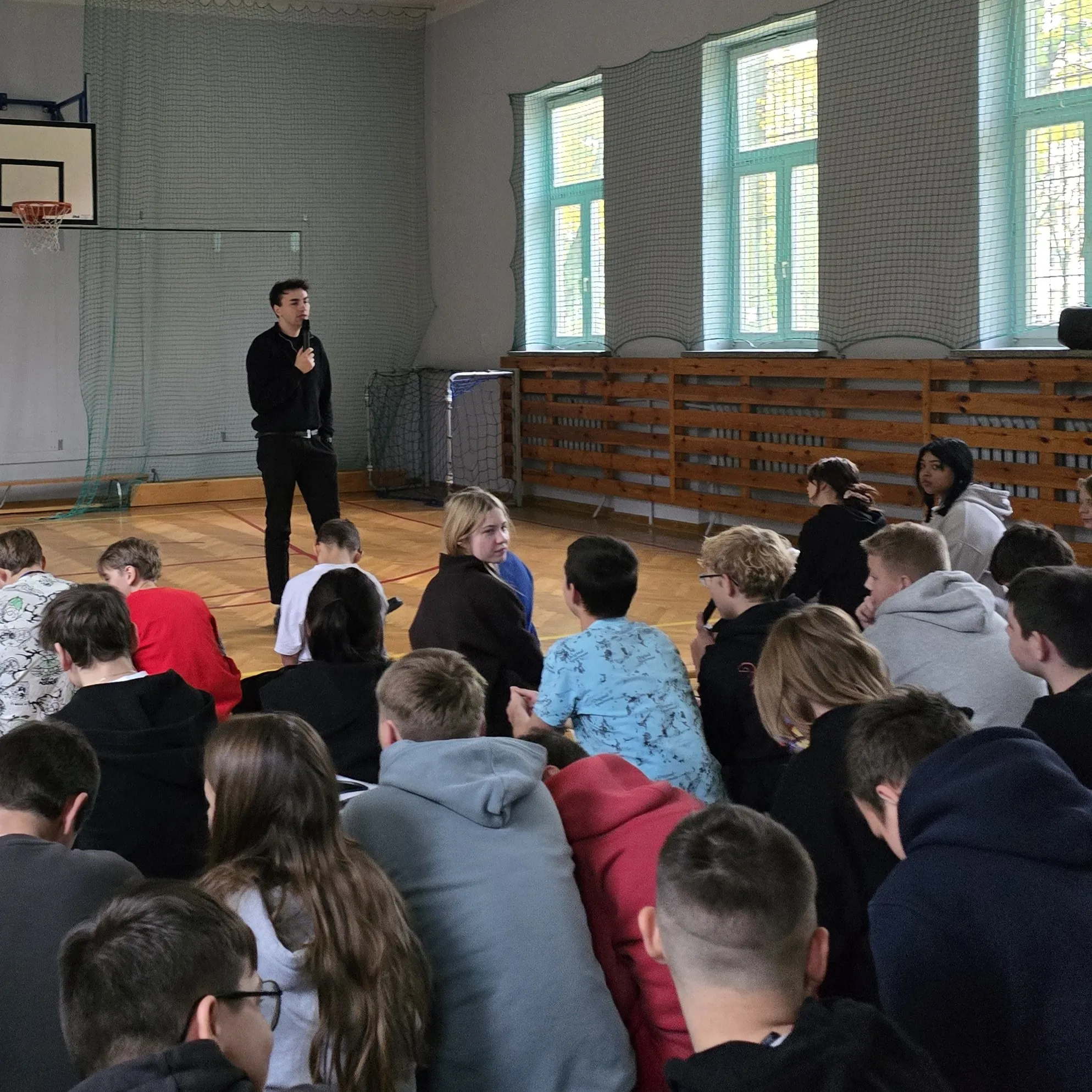 Zwieńczeniem dnia było spotkanie, na które wszyscy czekali – warsztaty prowadzone przez Adriana Zelka, znanego twórcę internetowego. Adrian w niezwykle energetyczny sposób wprowadził młodzież w świat tworzenia treści online. Podczas spotkania poruszyliśmy kluczowe tematy: