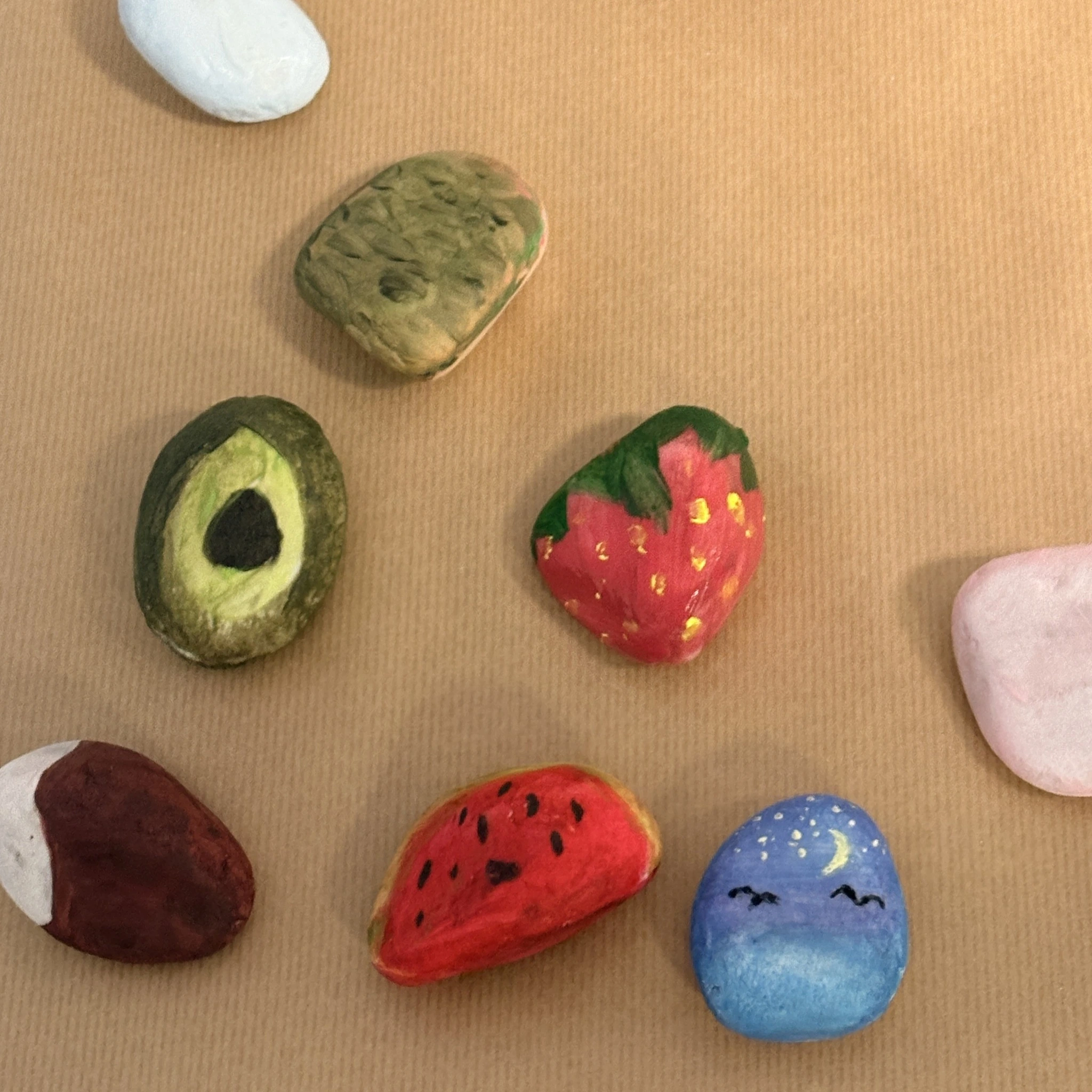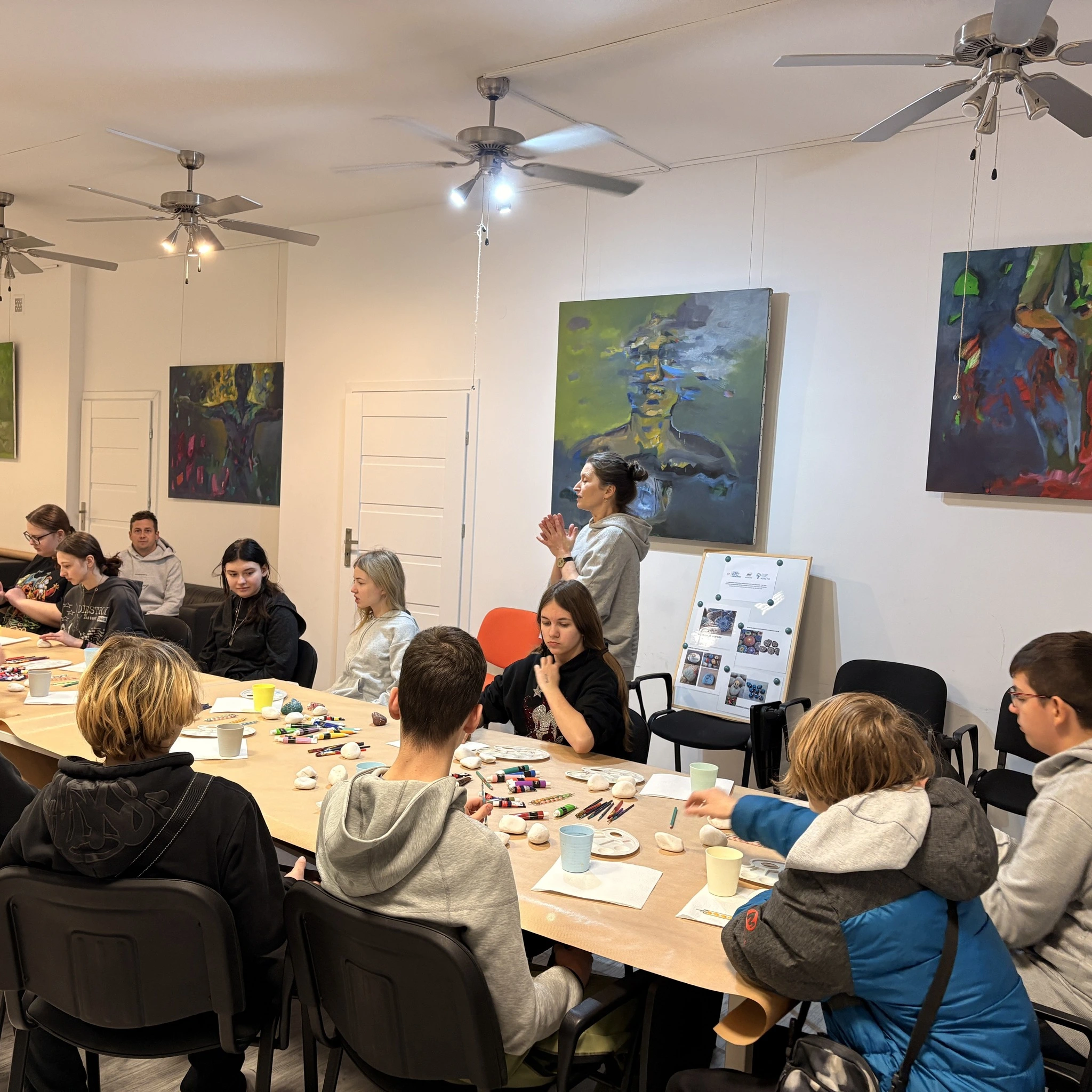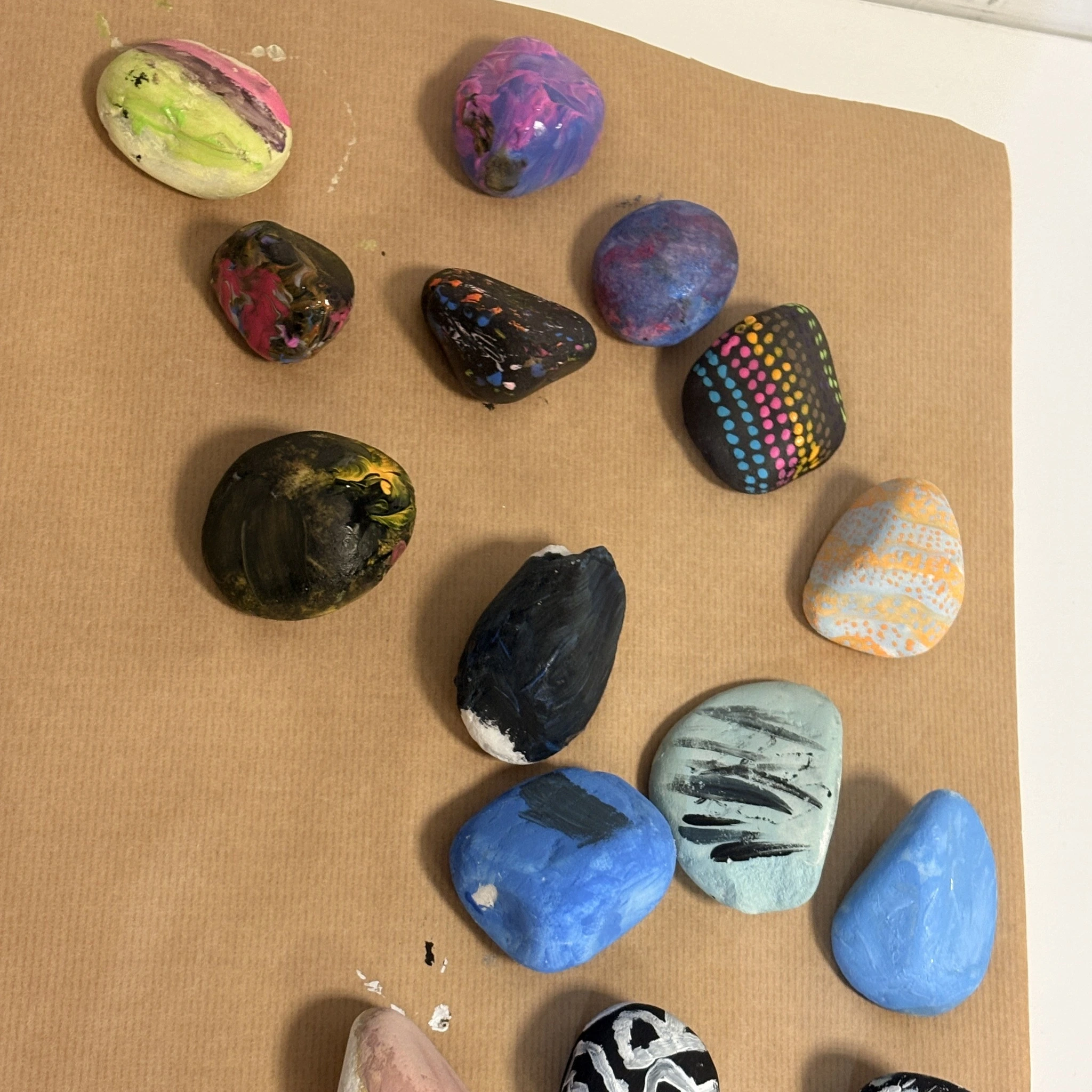 • Wyraz artystyczny: Blok sztuki pozwolił na zgłębienie różnorodnych stylów malarskich. Nietuzinkowym zwieńczeniem tych zajęć było malowanie kamieni i włączenie się w ogólnopolską akcję „wędrujących kamieni”, niosącą pozytywną energię w świat.